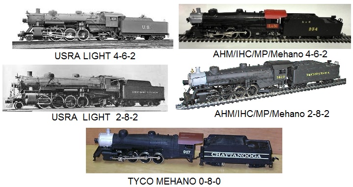 I think the Mehano 2-8-2, the Mehano 4-6-2, & the Tyco [Mehano] 0-8-0 all had the same boiler. The Mehano TYCO 0-8-0 was a 2-8-2 chassis without leading and trailing trucks.