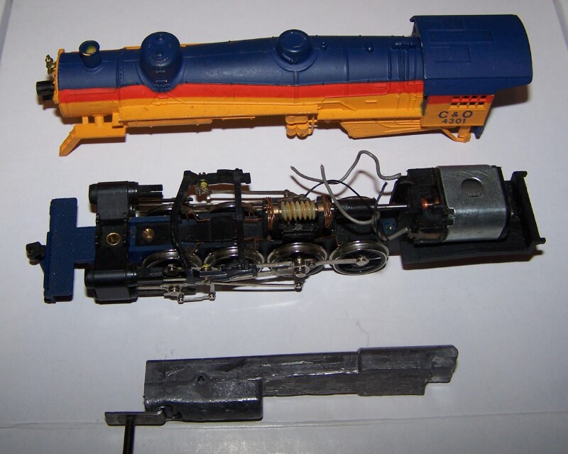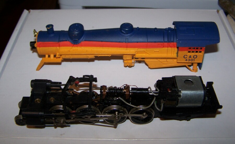 Well, while scoping out the Internet today to find Chessie steam photos, I ran across the goldmine I'll post here. Looks like my steam engine shell was made by AHM, in BOTH 4-6-2 Pacific, and 2-8-2 Mikado. That 4301 number threw me off, as that is almost exclusively used by Tyco, so I was sure it was that version. Nope. Here's the pics to prove the AHM heritage.