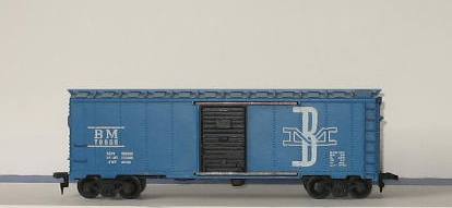 I was at a swap meet last weekend and found this old Mantua B&M 40 ft box car. Close inspection reveals a really crappy printing job on the B&M logo and I need to put Kadees on it, as well as my standard IM metal wheels.