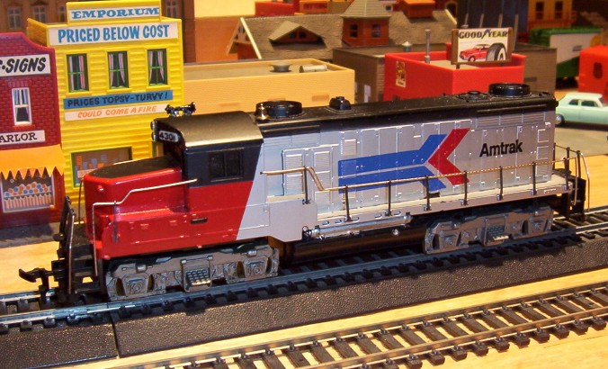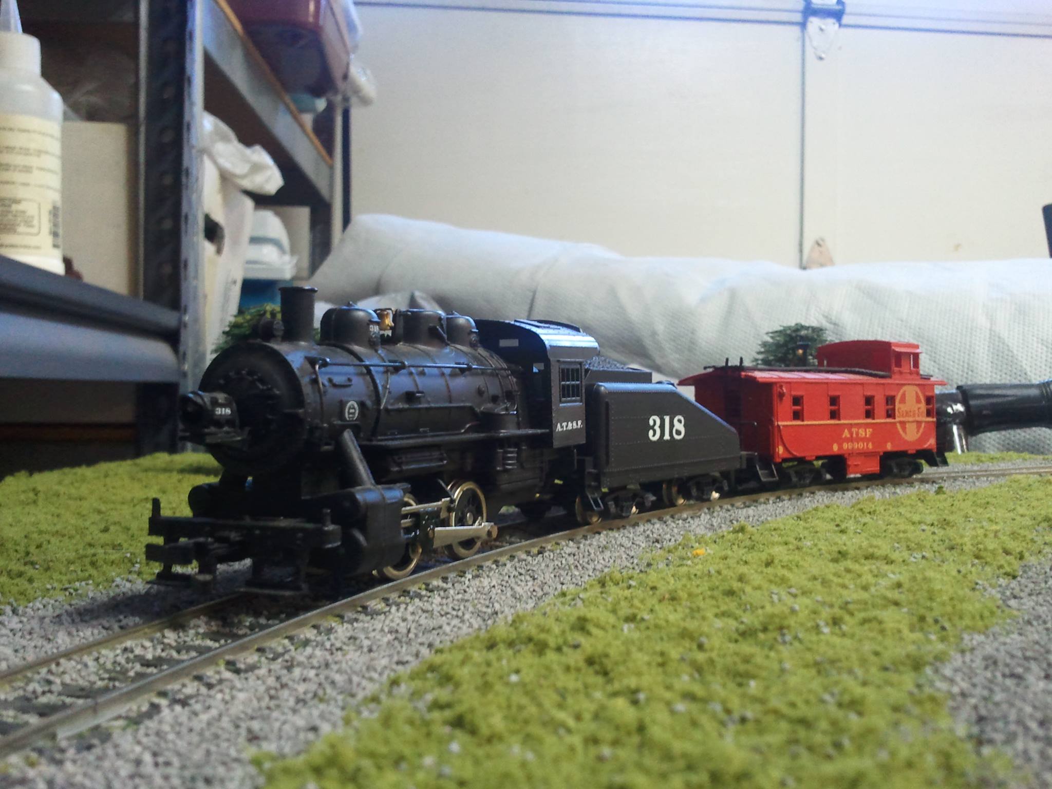 Life-Like "Bluebonnet" Santa Fe F7 diesel locomotive. It actually runs pretty well for a lower-end locomotive! I do hope to someday get an Athearn model, or a Proto 1000 Santa Fe F3A, for a more powerful version.