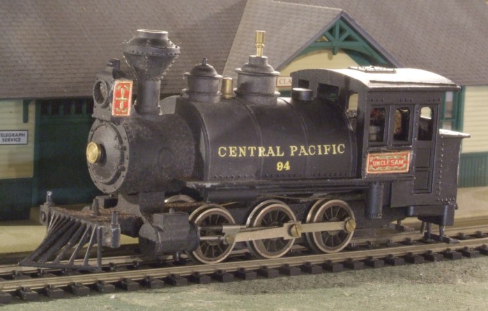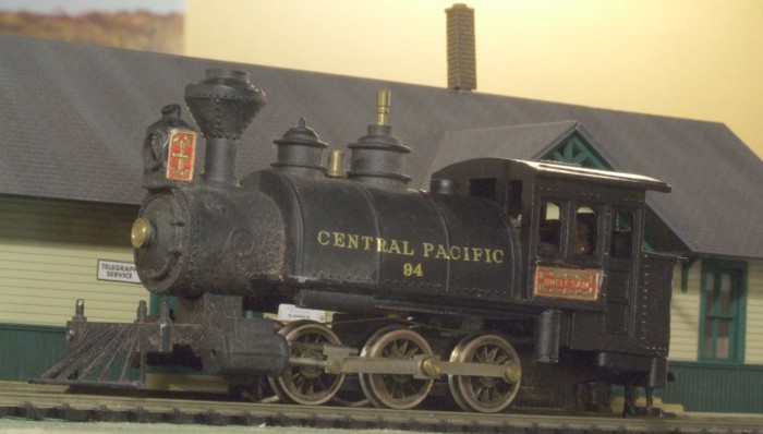 This is another view of the engine sitting in front of the only backdrop I have at present. I'm proud of this engine, which looks more suitable for Sn3, but I'm still on the prowl for the 2-6-0. That's the one I had in the early '60's. Neat little engine all around, in my view