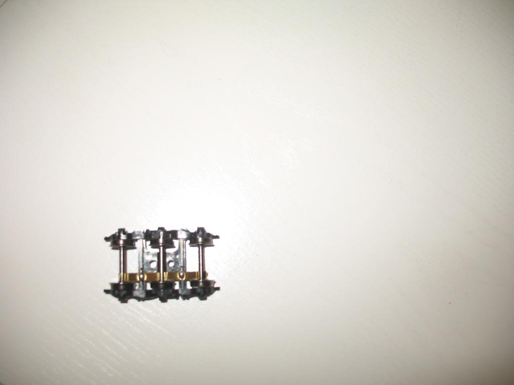 I improved on the good doctor's wipers in this manner (two trucks with IM wheels, with the wiper on the uninsulated side), using a .025 phosphor bronze wire thru a small hole in the truck crossbar, then soldered to the wiper as it lays across the wiper. The other portion of the wire is bent at the other end of the crossbar thru hole in a S shape to keep it in place w/o adhesives: