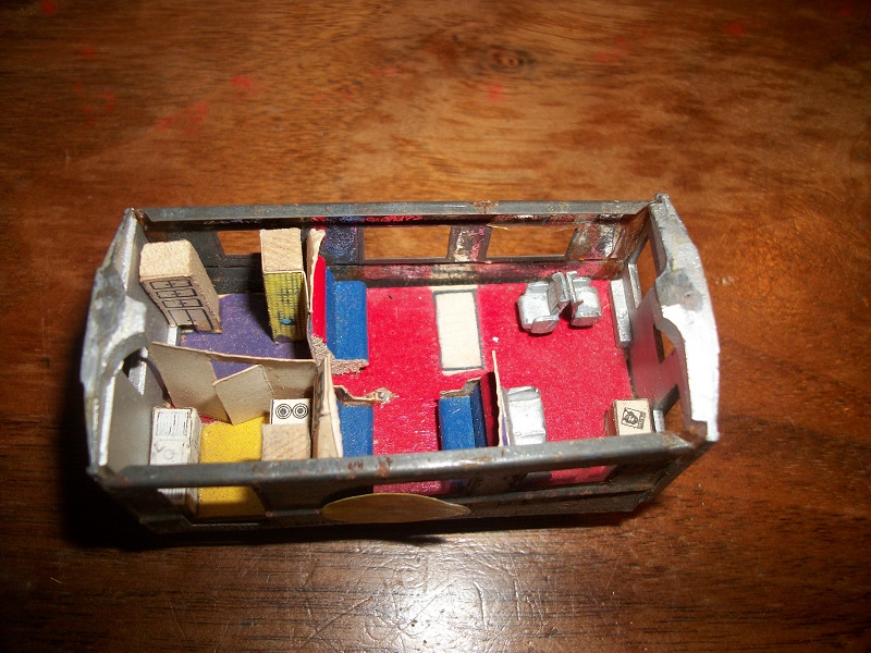 THEN, interiors. I'm not 100% sure, but I think they may have came new with what you see in mine.....wooden with cardboard overlays, but nice looking for the time and still not to shabby for today! I have to say that stove for cooking in mine is a dead giveaway to what that "area" is dedicated to be!