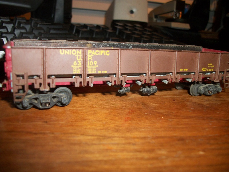 If them hatches open on the outer side, I have to tell you, the stuff in it is going to come out at a 90' angle to the rails...