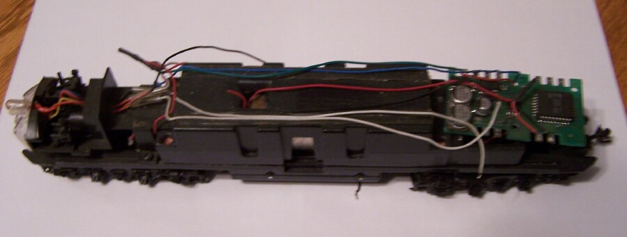 While going through my project drawers I ran across this engine again, I'd forgotten about it, but I've a collection of E7A shells now, and can use this chassis. After doing some research, it SEEMS to be a Proto 2000 with a very early Tsunami sound equipped decoder. Problem is, they've discontinued the older versions, and this is even older. I've found a DSD 150LC listed at the Soundtraxx website, but this one says DSD 100LL. I can find no documentation online about it, I would like to know how to wire it up, as the previous owner butchered the wiring, so I have no idea of the pin-out, as the design is different than the documented DS 150 they still have some documentation on. If anyone has either 1) a pinout of this decoder to help me, or 2) advise whether this is a total POC and I should just not bother with it, I'd appreciate some help here.