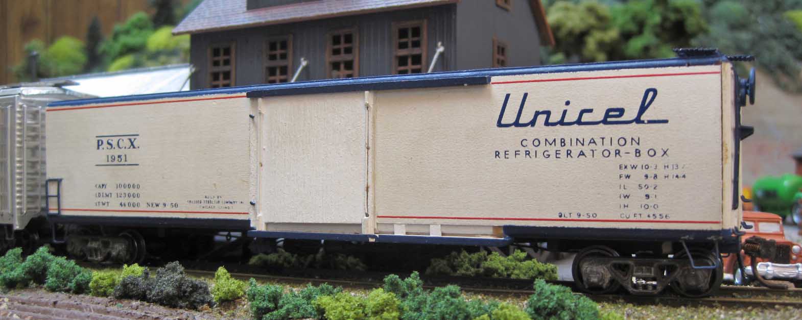 I'll throw in a couple cars I picked up at the Huntington train show yesterday - a Globe metal Rock Island boxcar and an Ambroid Unicel reefer/boxcar. The Ambroid is a built wood kit