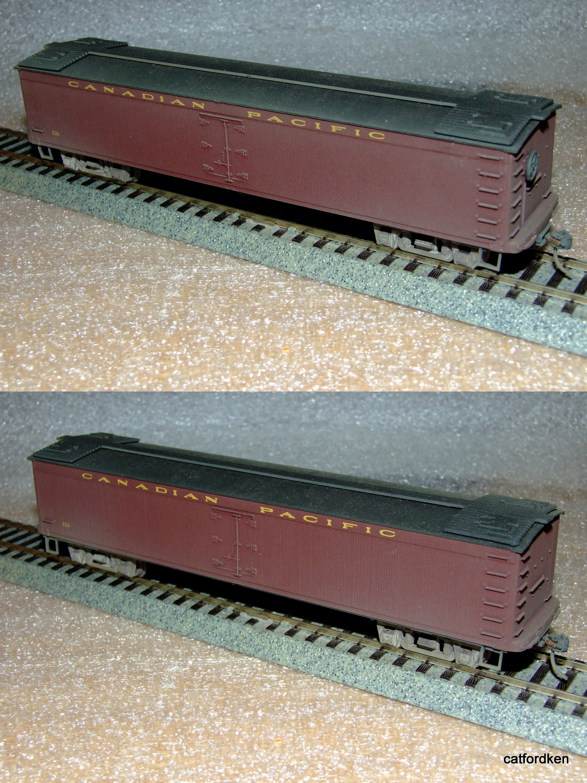 Here's a before and after - walt's shiny new one above and then the same car after some long years on the MOW train :