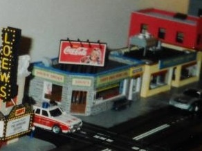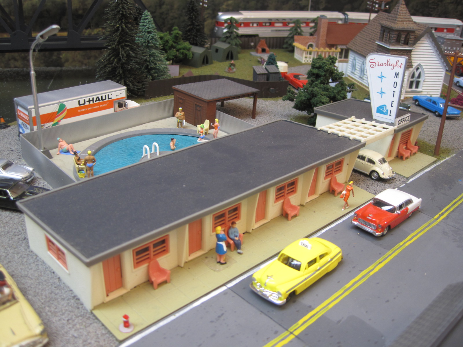 Man! I'm makin a lot of friends here quickly!! anyway, guys... I have quite a few buildings not in that photo including all of the Tyco Center Street Series... Nice job on the motel Jerry! I believe mine is white with red doors, chairs etc,,, like the colors in yours better...