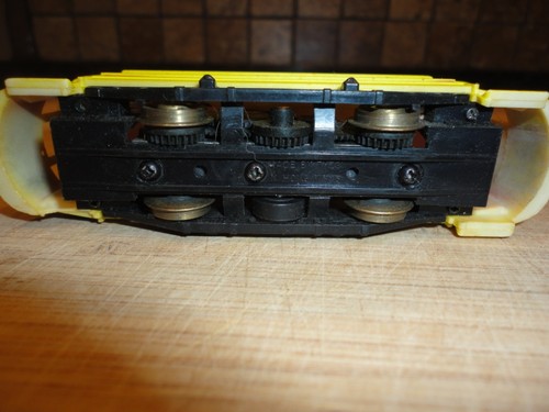 Ray, is that a chewed up MU-2 axle gear holding in the center axle? In 1971 I had my first & last Tyco F7 strip like that to the point it could freewheel. Since it cost $3.99 and the truck was riveted together, it ended up in the round file. Not sure why it happened; I don't think I was that rough on it.
