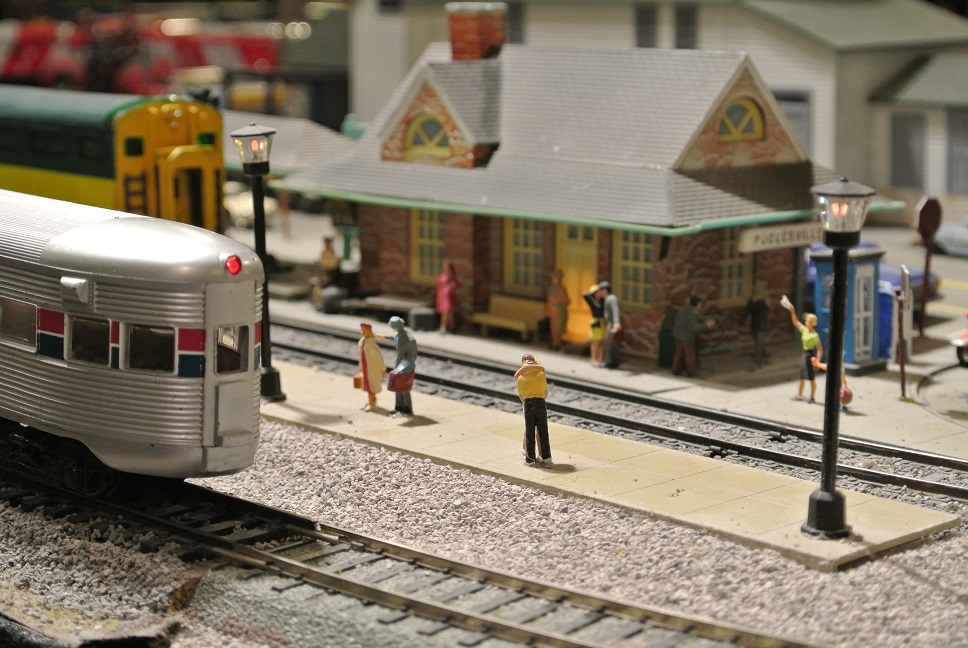 The depot is bone stock factory Tyco, the only additions are the platforms. The set came with a billboard that I changed to an Elvis poster for some strange reason. The figures are a mix of Preiser and others and some are hand painted but it has been so long ago I cant recall which ones. Thanks for the compliments and the support.