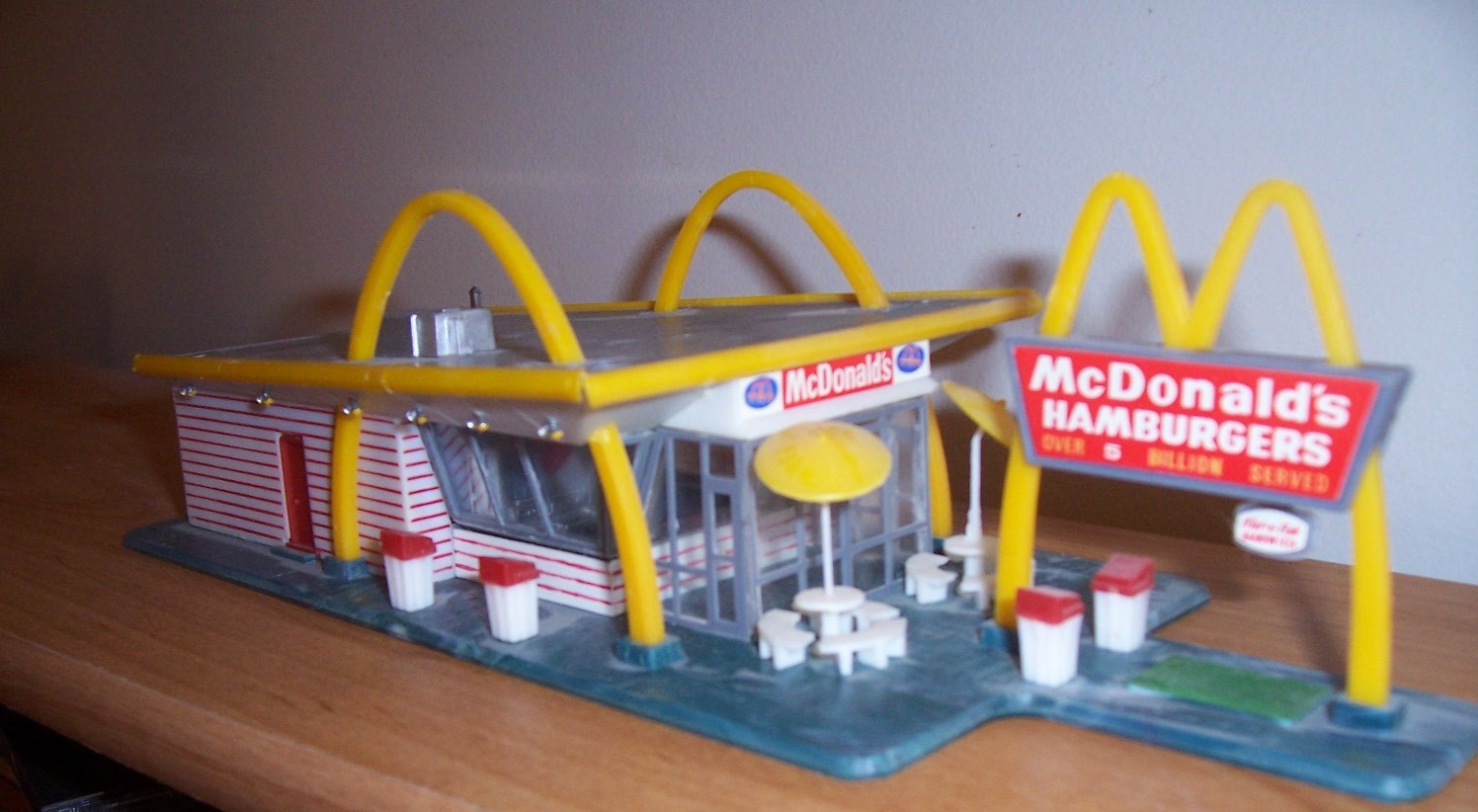Nice kit, Bus! I have had mine quite a few years and was bought as a boxed sealed kit. I had the freezee on my layout in the 1970's. An old favorite for sure! Here's a shot of my McDonalds, also taken 2/25/2008. Must have had them out taking pics on this day's eve. This was a sealed box with a price sticker on it which I attached to the box.