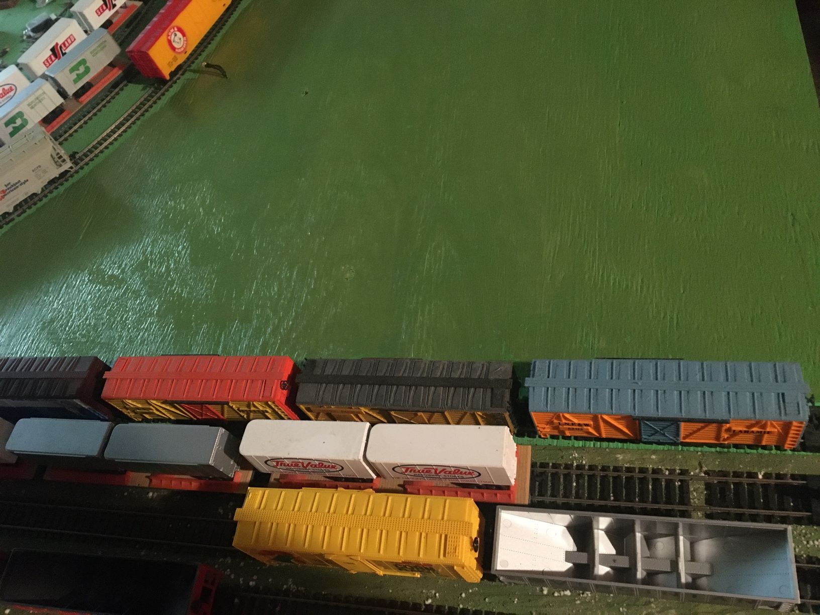I went down and counted my rolling stock on my table and found closely 228. I have a few pieces in one of my drawers that need wheel trucks or a horn hooks. Guess I needed all the room that I built.