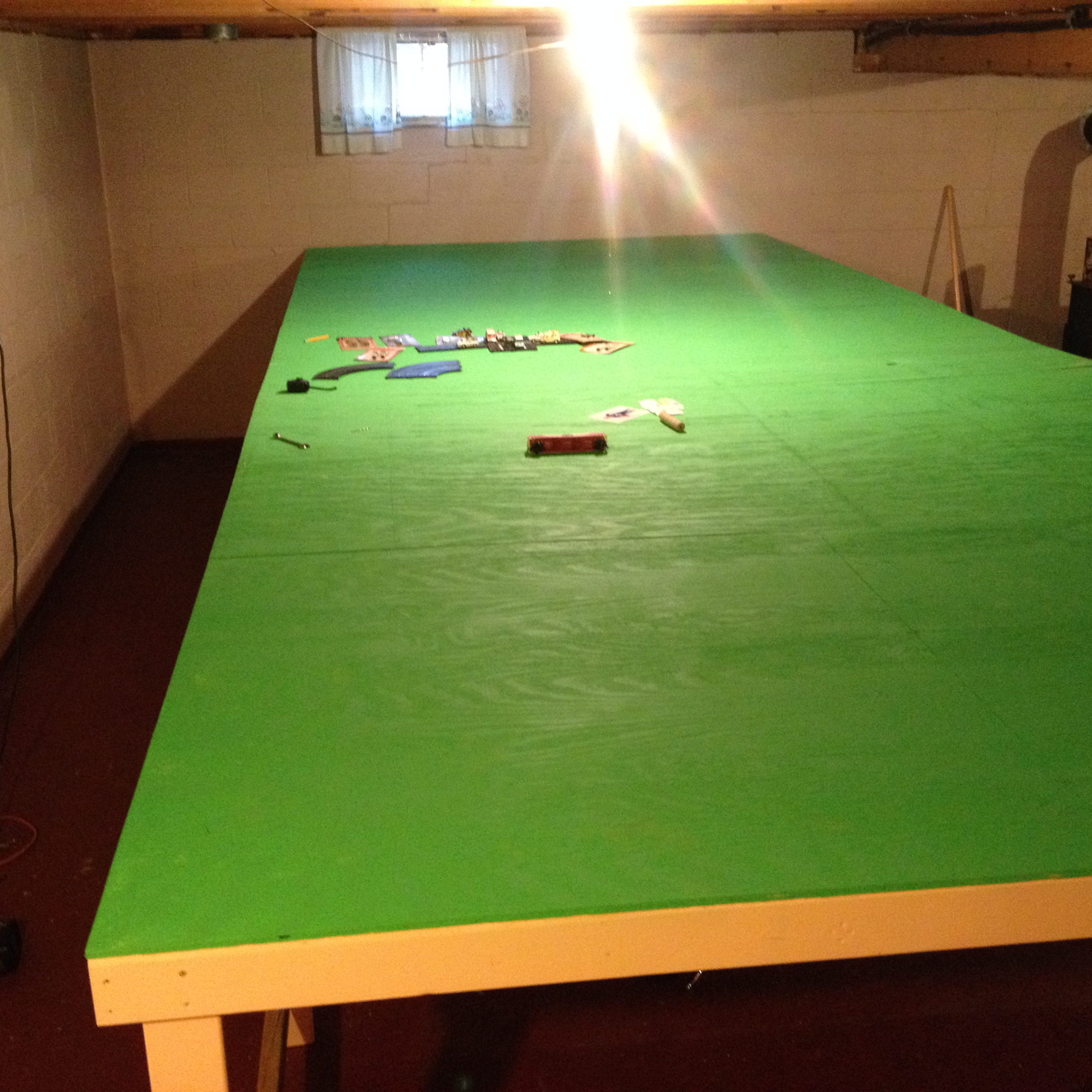 Last night I cleared the farm section off and repainted it the different shade of green. It's an 8 square foot section with only part of it in picture...
