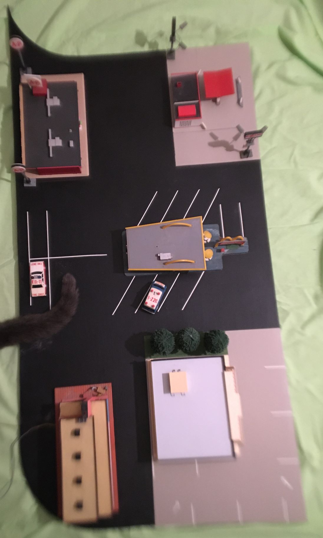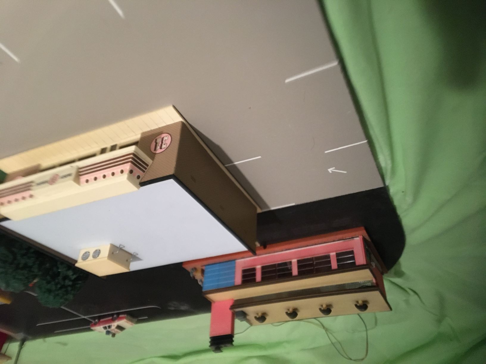 It looks good. I have to put everything in with a shoehorn, and this allows each building to show its dimentions, particularly the Siesta. Plenty of parking space for all those cool seventy and eighty cars.