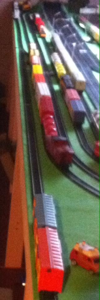 I counted 88 train cars on my layout table and stopped counting at 100 more still stored in my boxes.