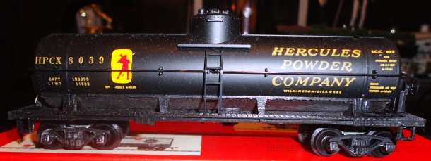 A friend of mine sent me this tank car and a few other Tyco freight cars. today. Black Single Dome Tank Car- Hercules Powder Corporation