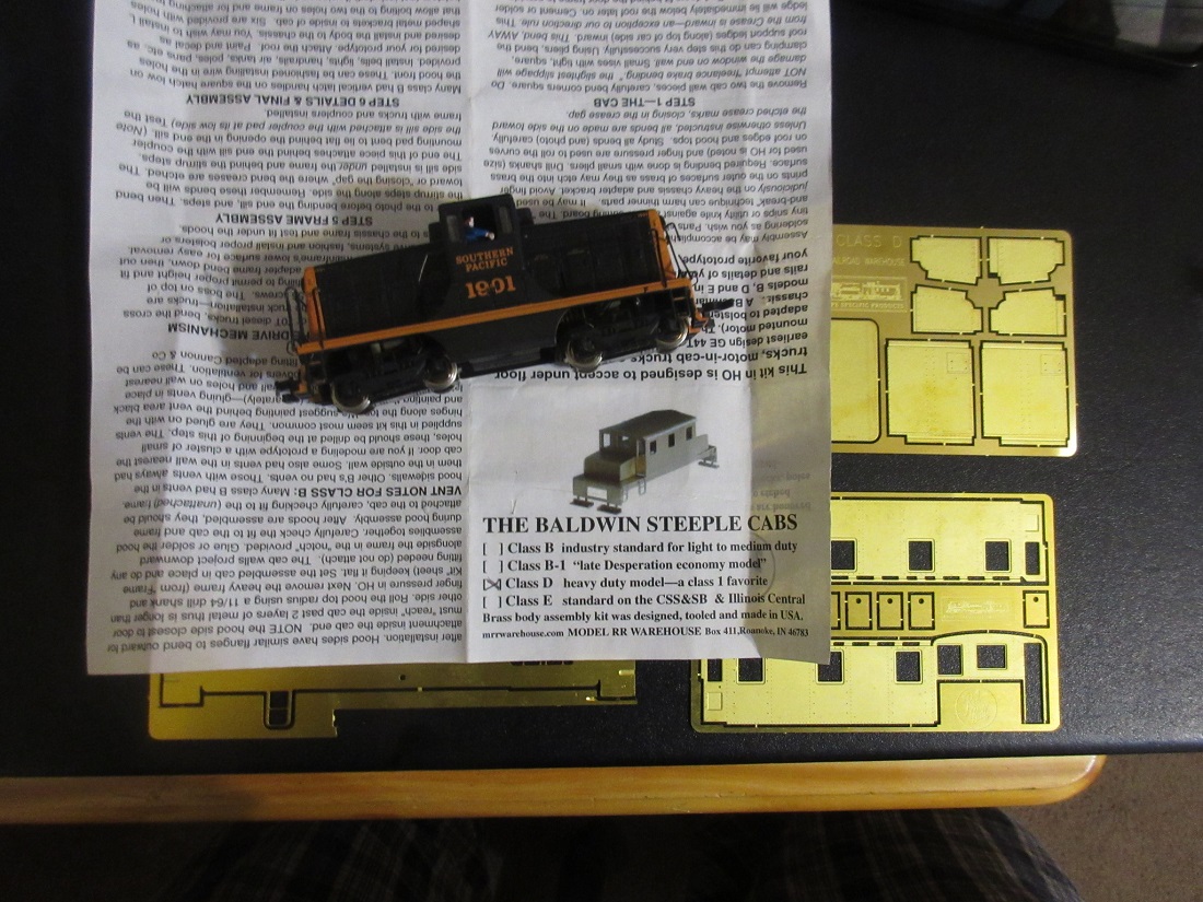 * The steeple cab is starting to look good. I spent the last 20 minutes looking for photos of the one my son made and can't find them. I still have the same project in a box waiting for me to build it. It is a cannon ball kit. I gathered the main thing necessary for it. The Bachmann GE 44 T drive is suggested as the loaner drive for it. * This goes right there with other projects waiting to be done.