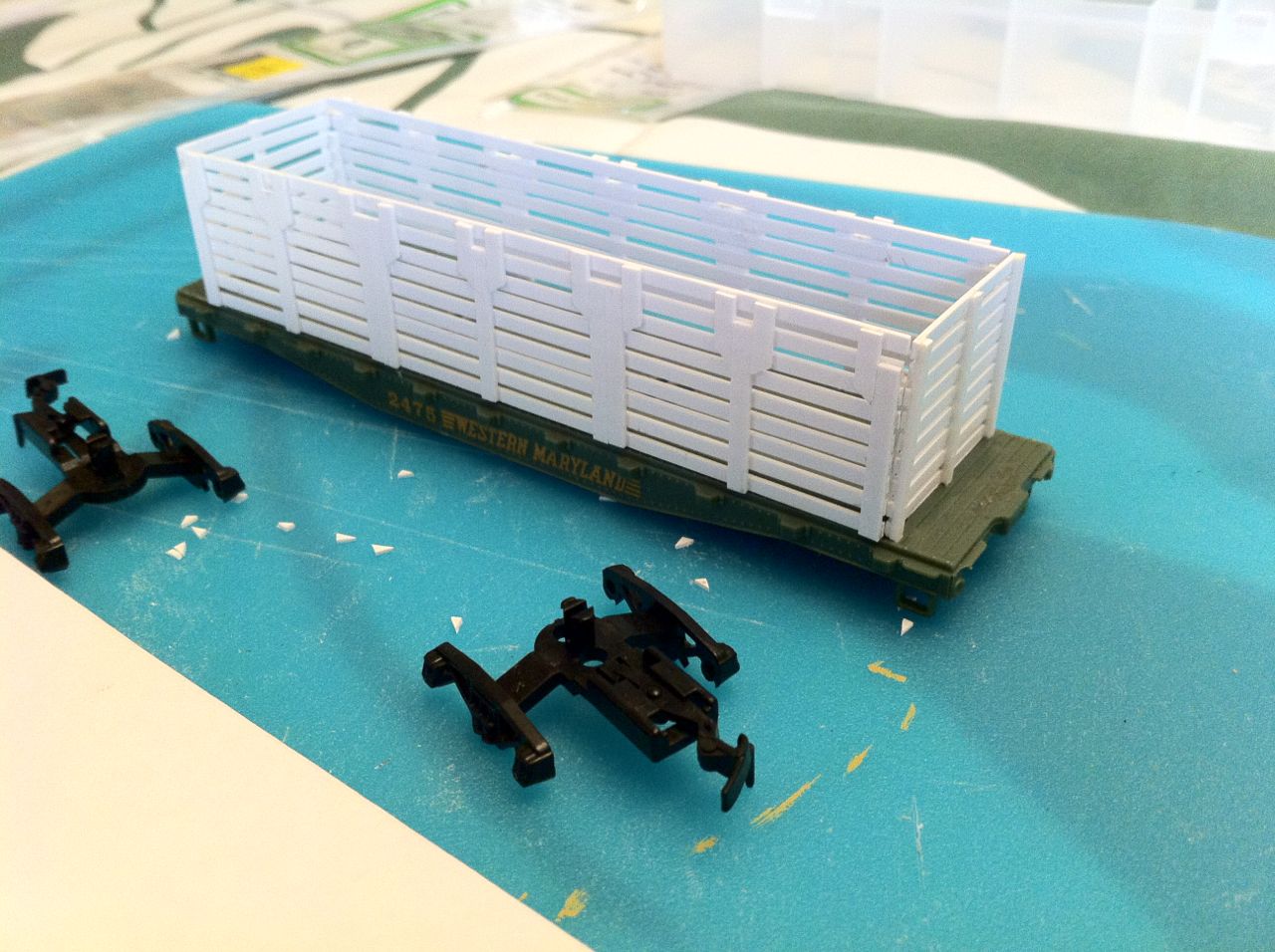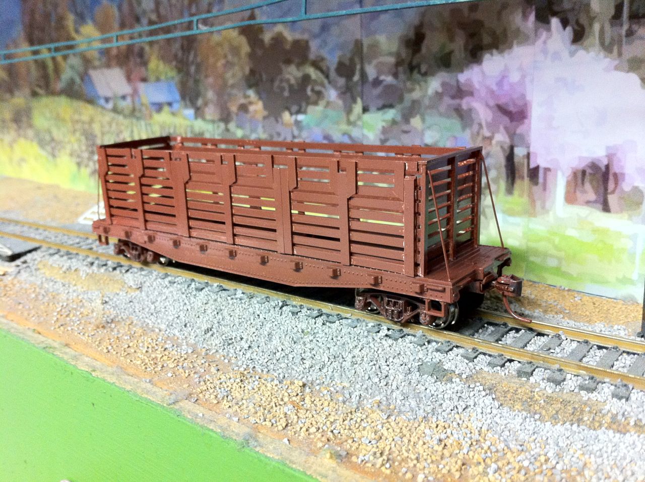 A quick little kitbash - it's a Blackburn patent beet rack built on a Tyco skid flat. I built the rack from Evergreen strips.