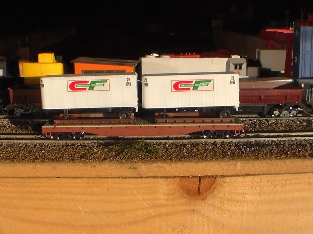 throwing in my COTW. It's amazing what some paint, Atlas trucks and KD couplers can do (for the car) just as cool when you find some trucking decals and a razor saw for the trailers (painting these was a pain though!)