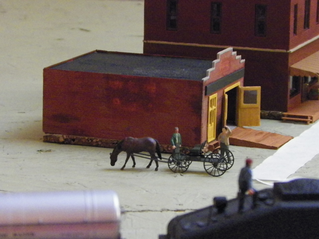 A great sign (above the structure) for that horse and buggy scene would be : "Classic Restoration Services" to tie it in to the modern era (as located near an Amish community, which might need such). I saw a D-I-Y cable episode this past December with Vanilla Ice, who now does construction rehab, where he had such a real company build a custom buggy for his Amish clients in Ohio or Indiana.