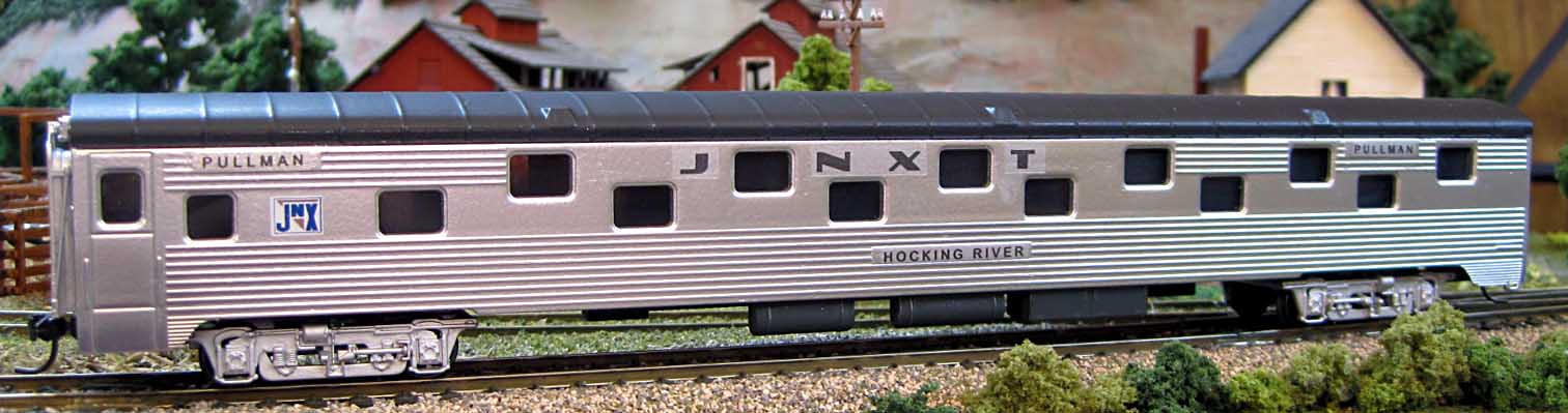 Here are some photos of the home road - JNXT. Pretty basic scheme, although I plan to enhance it as time goes on. The passenger cars will retain the classic unpainted, polished metal style though.