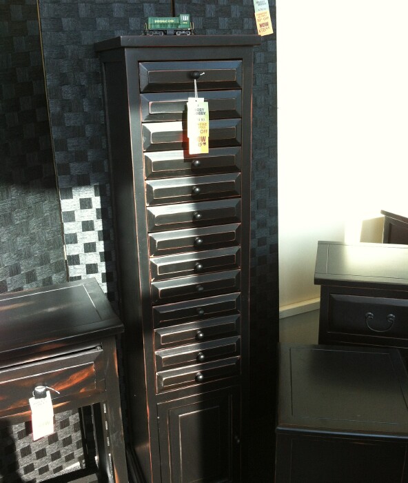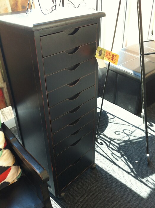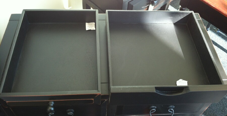 While visiting a Hobby Lobby at lunchtime today, I found not one, but TWO different cabinets with shallow drawers that would be near PERFECT for HO train storage! There's still a bit of wasted space, but not much. Tall unit is $195 on sale, the shorter unit is $135 on sale. Debating whether to try one or not. This is what I had in mind for drawer storage space, no distance between drawers, minimal height. And they look nice, better than cardboard boxes my wife is constantly complaining about. The shorter unit has a wider drawer, and only 8, while the taller has 12. Can probably get the same amount of stock in both. Decisions, decisions.