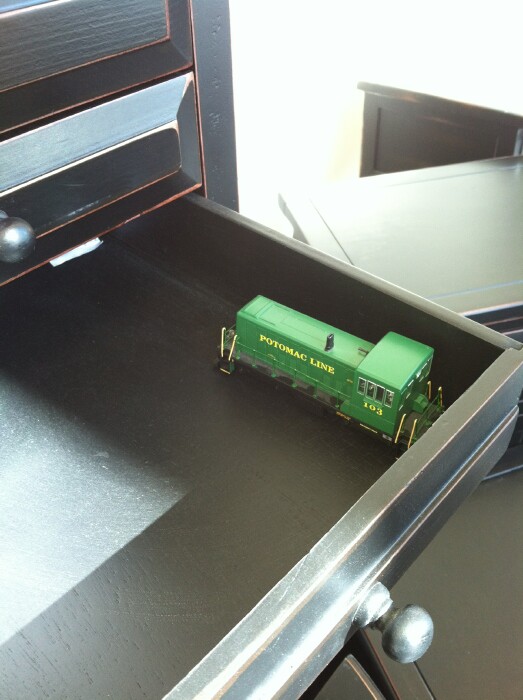 I'm thinking about 10 to 12 pieces across, if you had 40' stock, that might be 4 rows deep! I did NOT have my tape measure with me, darn it, so couldn't get an accurate size, but with the picture of the small yard switcher, it can give me a decent estimate. I'd say as long as you weren't talking about 70' or 85' cars, you could probably get 3 rows in, at least 8-9 across, in the slimmer drawer. There's a Hobby Lobby about 30 minutes from me, so I may go on Sunday to visit that one if possible, and do some more measurements ( and maybe buy one ). I have a rotating 3 foot tall pedestal shelf unit, that is not very efficient, I could replace that with one of these, in the dining room, and it'd look awesome AND hold lots of my trains. So will try to go visit a Hobby Lobby again soon. I'm thinking I want to try one at least. You figure 12 drawers holding at least 30 loose items apiece, that's a LOT of rolling stock! 360 individual pieces. All vertically stored in a visually appealing cabinet unit.