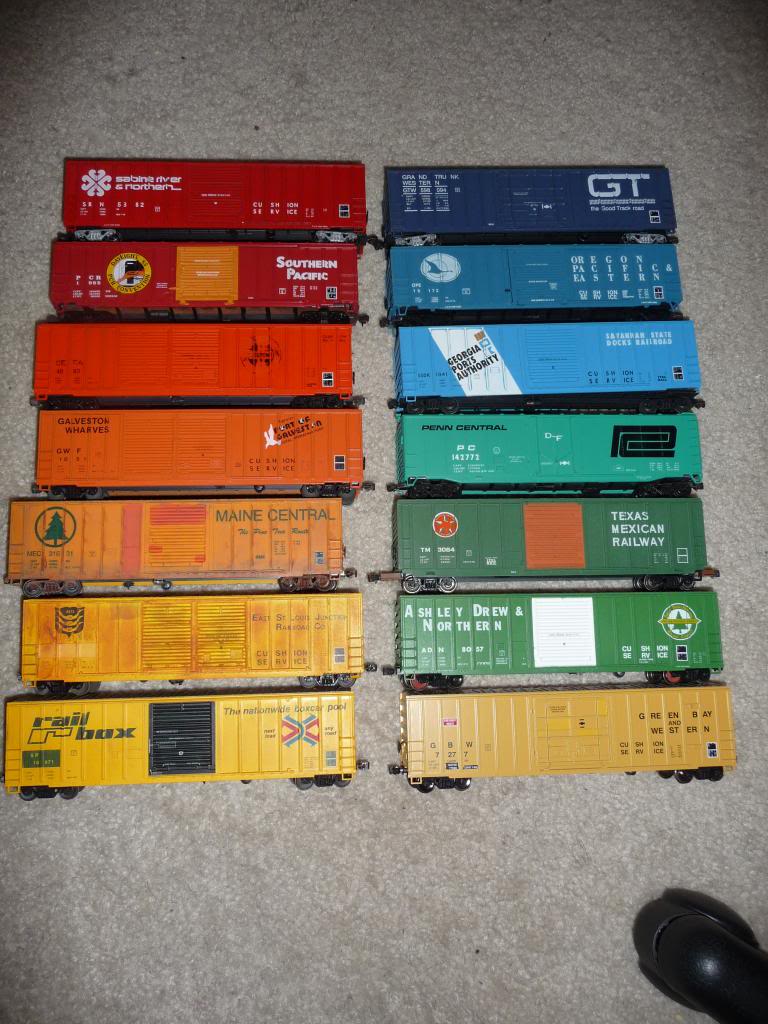 love the boxcars & hey I took a pic of a Sabine River & Nothern boxcar in my town in Jan Plus quite a few of the railroads don't exist either