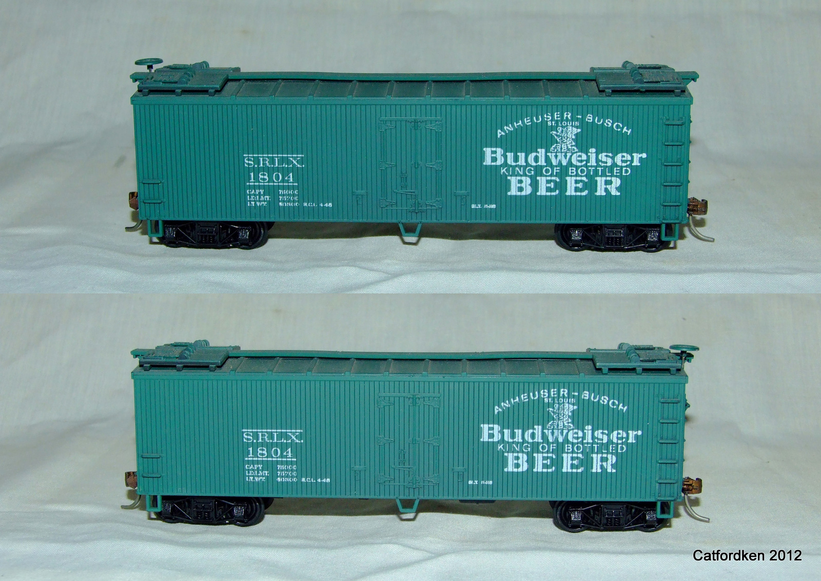 I'll get to it eventually, I promise! And if you could spare a set of decals for your SPSF cars, I'd love to paint one up myself if I find an undec one sometime! One thing about the roundhouse cars as well - I've never liked their flat brakewheels, and the chain isn't molded on like the athearn ones, so what I do is swap out for a kadee brakewheel and (this is one of the few superdetails I like to indulge in) a little segment of real HO-scale chain from the brakewheel to the frame. Look for the combo-door version as well, in all my hunting I've only ever found one, a MoPac car.