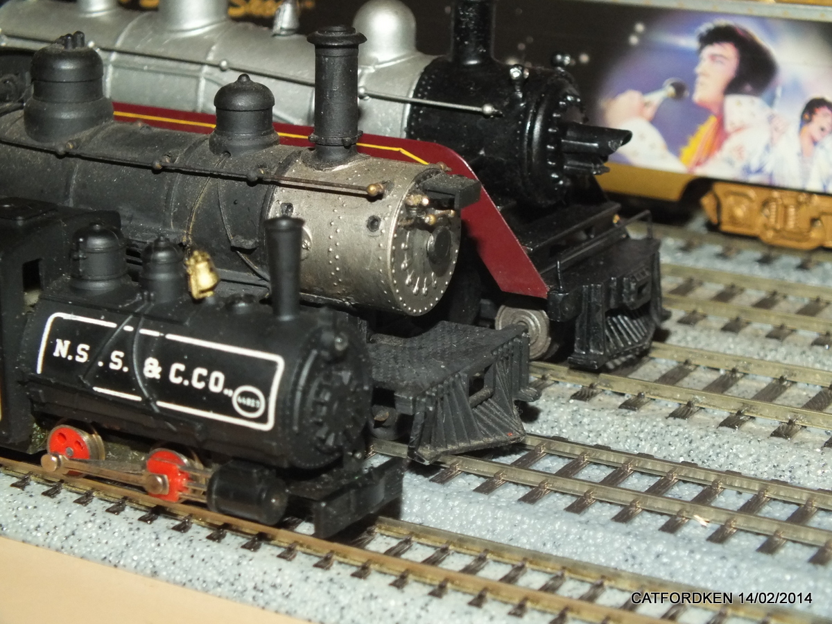 | The small steam engine is the MinitrainS Baldwin 0-4-0T. Originally offered by AHM in the late 60s and early 70s, made by Roco I believe, recently re-issued with upgraded drive.