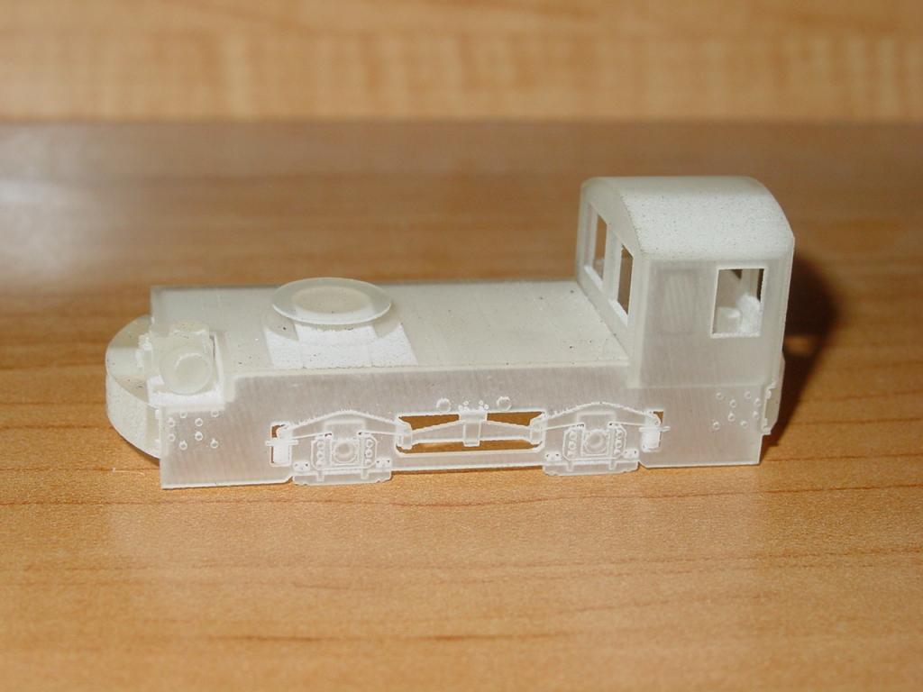 In my search for another small model to make a powering project and all the talk about 3D printing, I ran across a company called Shapeways. They'll 3D print pretty much anything from user created 3D software models, and they've built up a pretty good catalog of unique model railroad items. One of them is a very small GE 20-ton electric used on a few industrial lines, designed by "tschwartz1274". It was made to be a static model, so naturally, I had to power it.