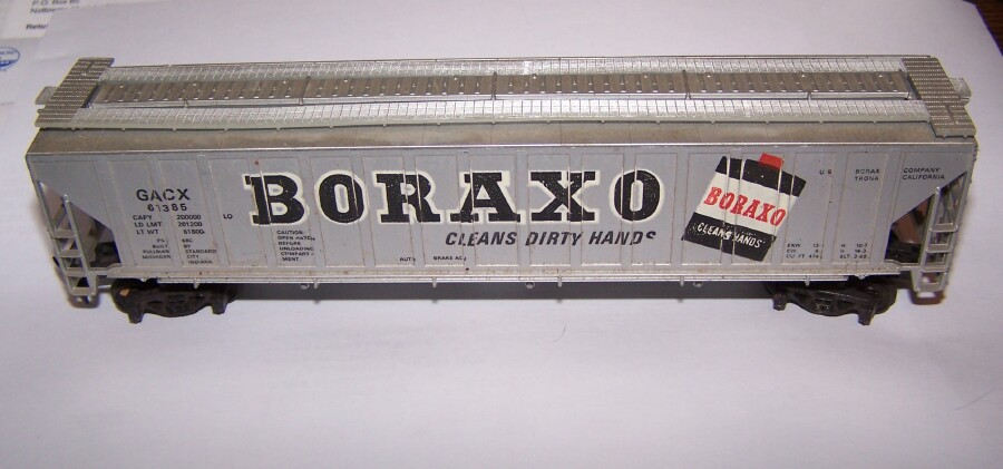 Rather than batting clean-up, I'm just gonna clean up the first post, with this nice Tyco Boraxo boxcar. Forgot where I got this one, but one of my nicer billboard cars.