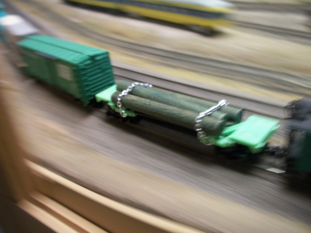 Tyco log car in motion. It tracks beautifully.