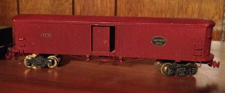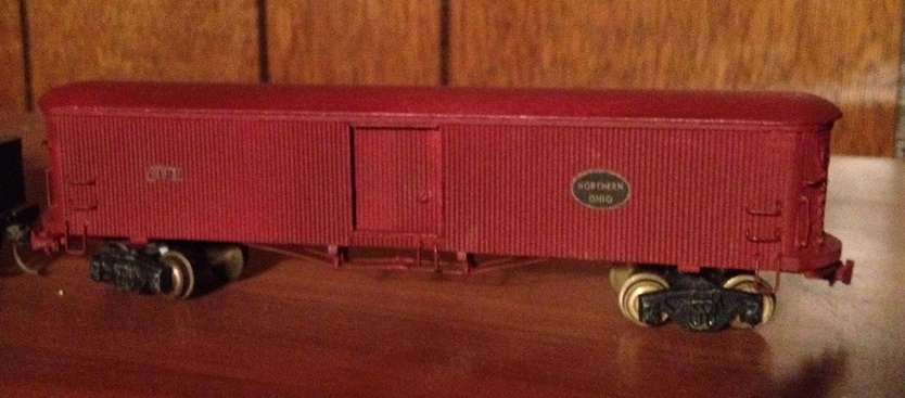 After a long, long, long, long, long, long, long, long, long, long, long, long, long, long, long, long search I finally ran across the yellow GM & O box car. In fact, the listing came with two of them. The bad part is that is it early TYCO and I can't put horn hook couplers on it.