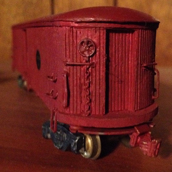 My COTW is a hand made wood HO interurban box car to be used on a trolley line.