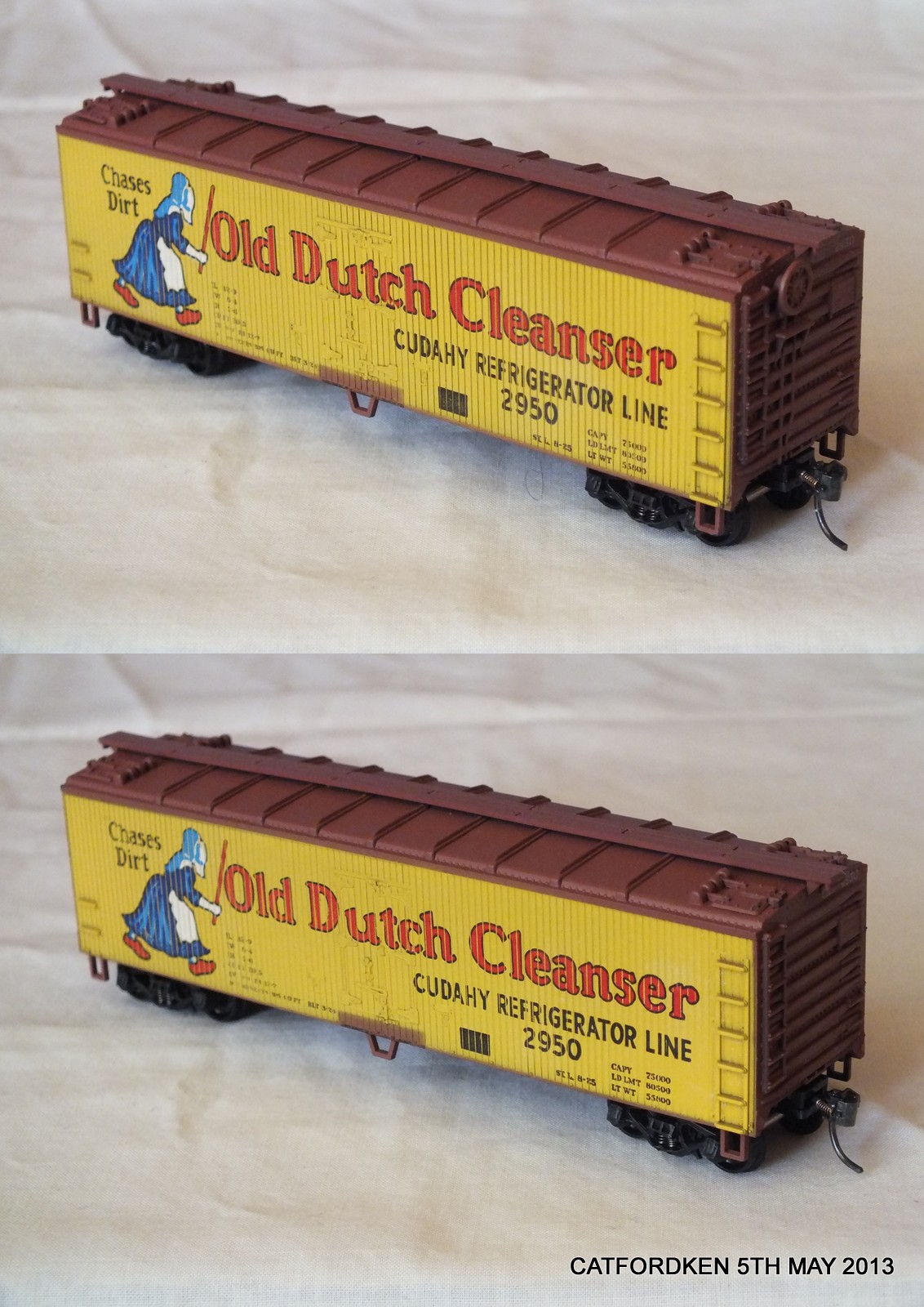 My COTW is the TYCO Dutch Maid, in both hopper and box, being led by a vintage Rivarossi Krauss-Maufie. There are seven Dutch Maids in this consist, and the KM was pulled from a scrap box, not working. A drop of lube and a good wheel cleaning and she runs sweet as can be. Photo taken at El Paso Model Train Club last week.