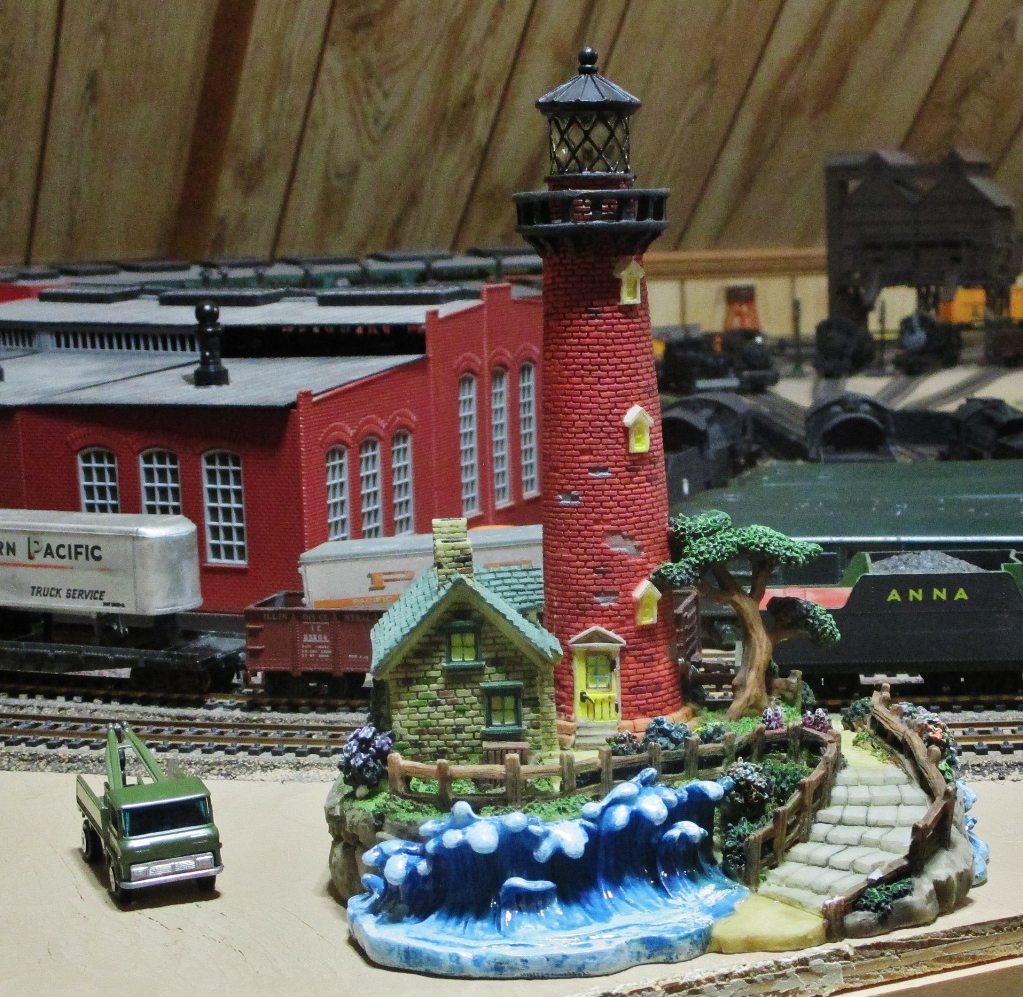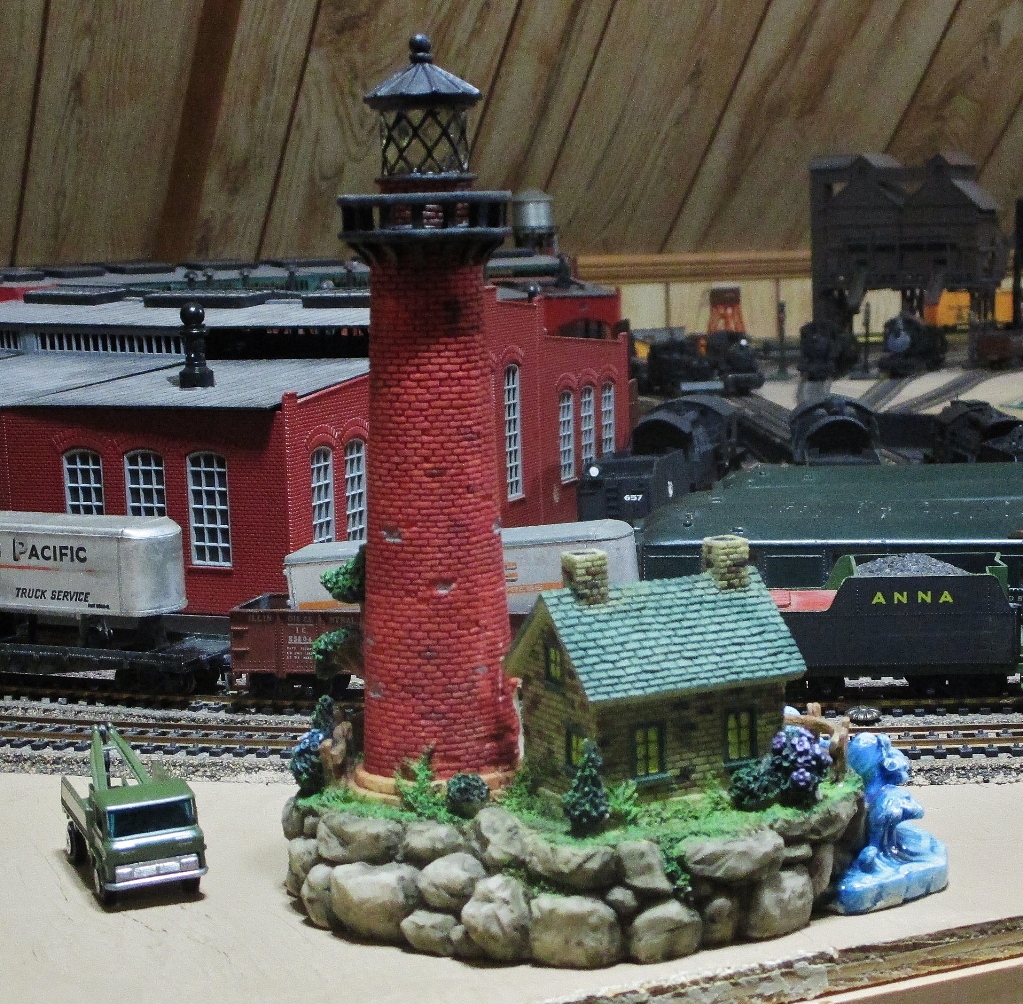 ** My building of week is a ceramic light house made yes in China. I found it on the same day as the scratch built wood building at a antique store. frank