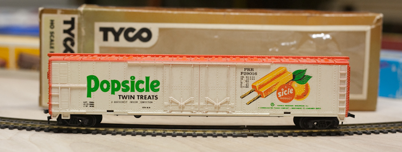 I actually have a Tyco Tropicana box car in my house somewhere. Or was it a Popsicle car? I'll have to take it out at some point. Whatever the case, it was donated along with a ton of other model train stuff a year or two ago.