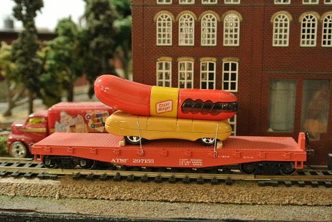 I've seen something very similar at a train show by the Lionel layout. They put a whole train of Weiner cars on a bunch of flat beds.
