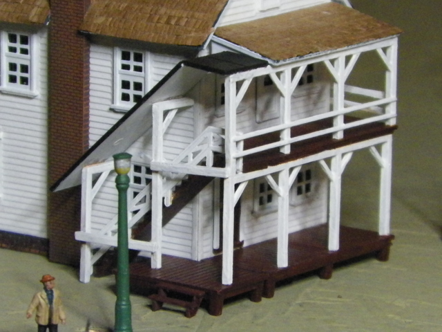 That rooming house looks good. Is that stairway one of the options of the kit or did you cook that one up, yourself? I don't remember that being in the kit.