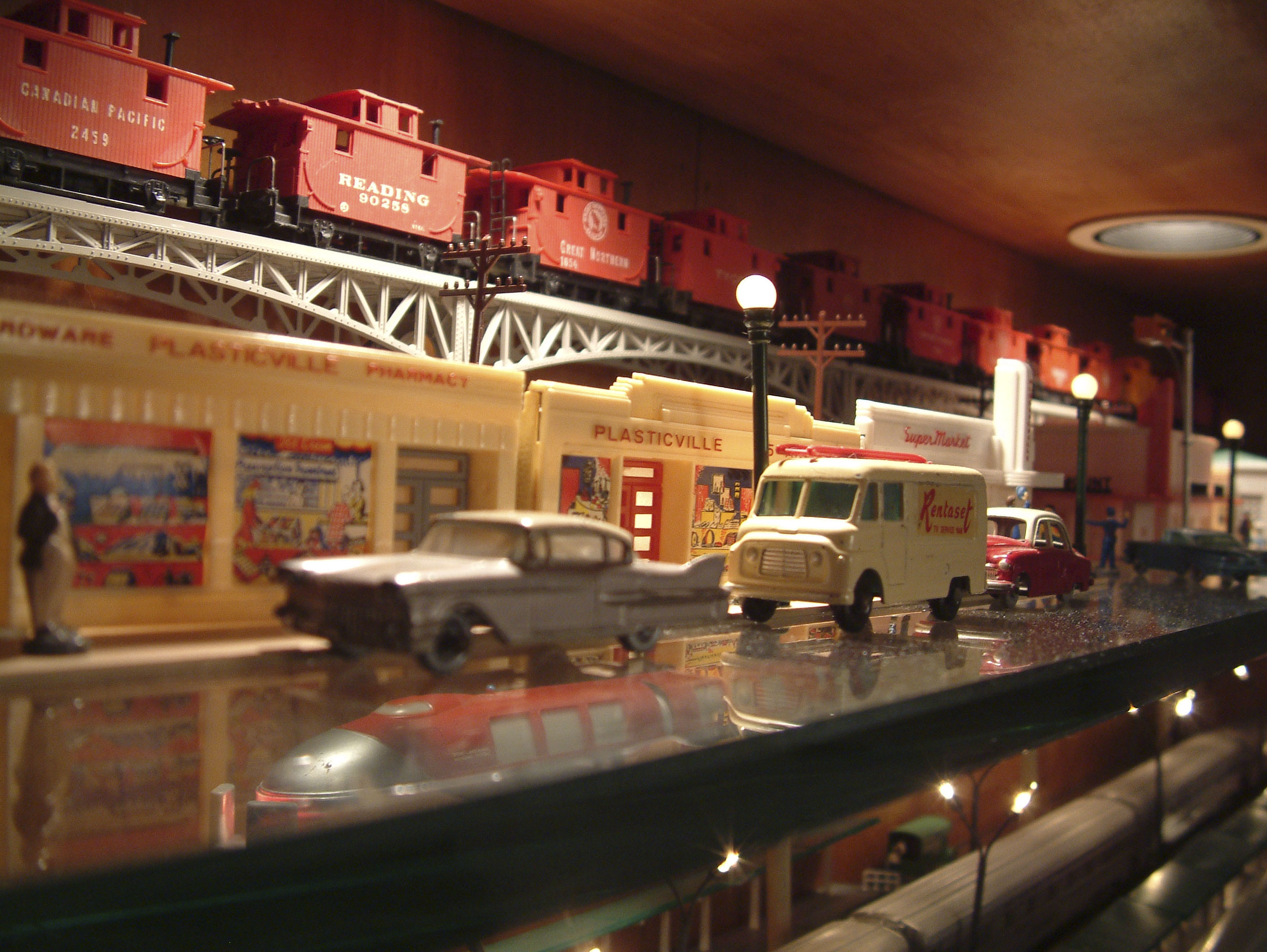 That is my "train shelf" in the photo. I don't have many photos of it, but more are under the "Matchbox Cars on Layout" thread. My camera is broke, so I don't have any up-to-date photos until I get a new one.
