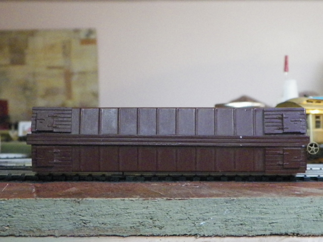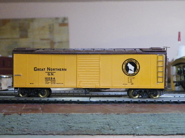 | Thanks for the explanation of the braking system Don. John, I am ignorant of box car details; are you thinking the doors should be hinged (to swing out?) because it's theoretically a wood sided car (because of the ends), or because it's a Great Northern car?