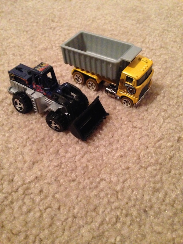 Here's my AOTW. A Hot Wheels bulldozer and a Hot Wheels dump truck.