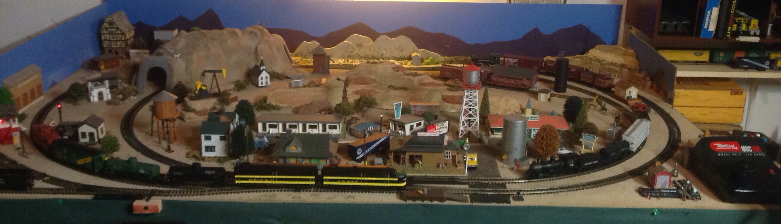 I didn't want to send Barry's pics behind a new topic, so I just wanted to share my small layout here also. I liked his views that gave the overall picture of his layout, so here's mine. It's basically a double loop with a small semi-hidden yard on the left, and an extension staging area at the rear-right.