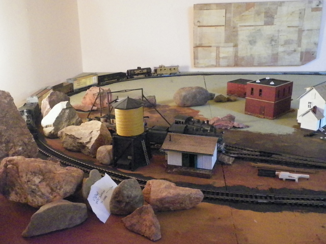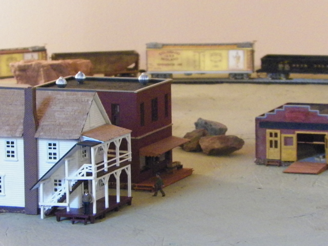 Seems like with this small space, I lose the feeling of the sparsely populated west if don't leave a good amount of open space. I definitely wanted the stuff on board to service the locomotives and then a place for those workers to stay and eat and such. This is what it comes down to so far . . .