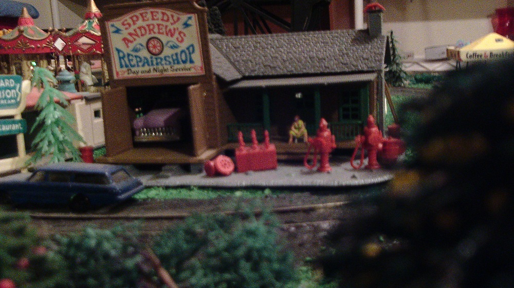 Tyco "Speedy Andrew's." The camera resolution is poor, but the girl in the chair is blowing a bubble of gum. Photographed on Tycomania Layout.