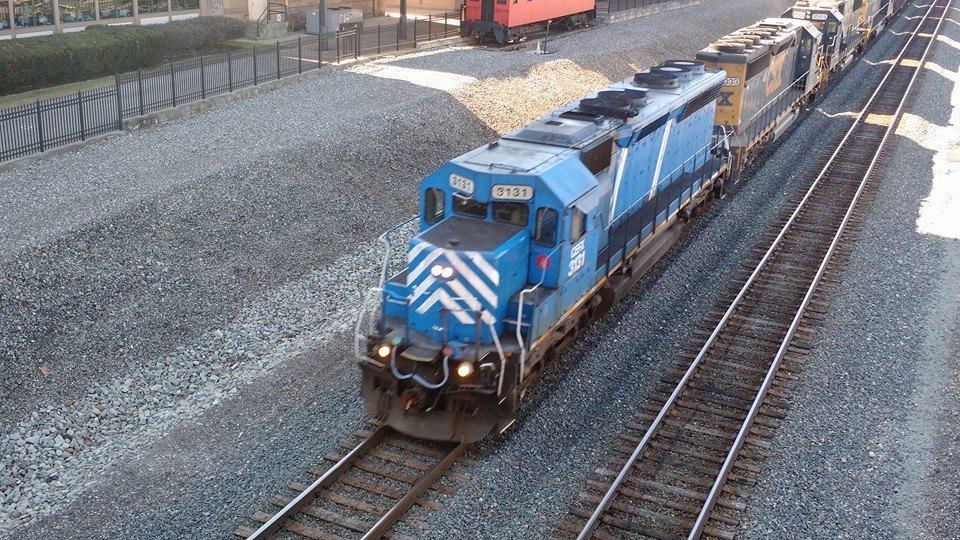 My friend Shawn Christopher took this photo of a lashup of CSX locos from the Smithfield Bridge in Pittsburgh March 2015. CSX 3131 looks to be an SD40-2 now and no longer an ES44AC.