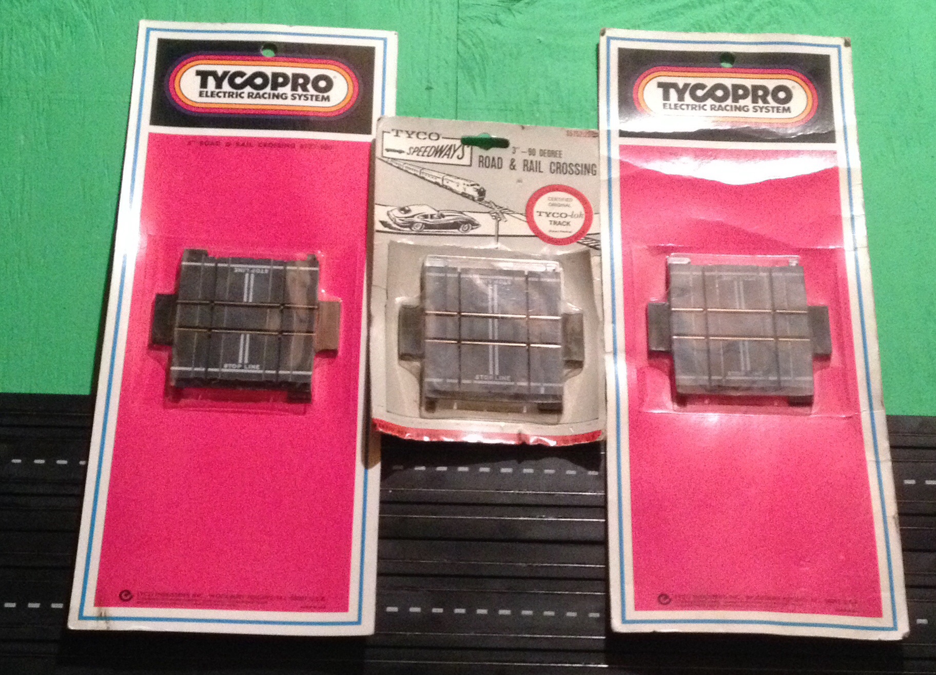 Not really an accessory but wanted to share these three new on card Road and Rail slot car crossings. I have used 6 nice ones on the layout. I have one nice loose, and these 3 left ...