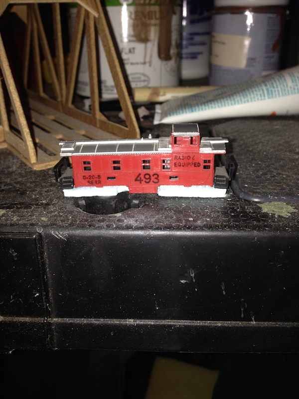 Here's my AOTW. It's a little project I'm working on which should be done by the end of the year. It's basically an old Arnold Rapido n-scale caboose I got in a lot of old Arnold Rapido trains for $15. The axle was broken and I knew it would be a pain to find a worthy replacement so I'm going to make it into a drive-in.