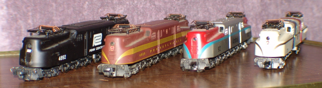 I have a few AHM loco's here that I can take some pics of if you would like to use them on the resource site. Bicentennial GG-1 and if I remember there's a silver with red nose Amtrak? Big Boy and other what my father called "mallets". And a few diesels. Don't want to stick my nose in but if you would like I can try and put some together. Gic suggested smaller files so I'm trying a different size and cropping to see if it takes up less space. I took @ 25 pics but don't want to waste the space with any more if you don't think I should put them up. There are quite a few more I didn't take pics of. Most of the steam loco's you see were parts when I got them and I tried to rebuild them as best I could, even the Big Boy (I always liked steam), most of the diesels were reconstructed from parts I got out of the bins at AHM when they had their monthly open house and pictures & diagrams I found or borrowed, and yes they do run, except the Big Boy my son broke the internal driveshaft on. What was left over in parts went out in that package to Hypoponera. The Bicentennial GG-1 is # 0591 of 3000